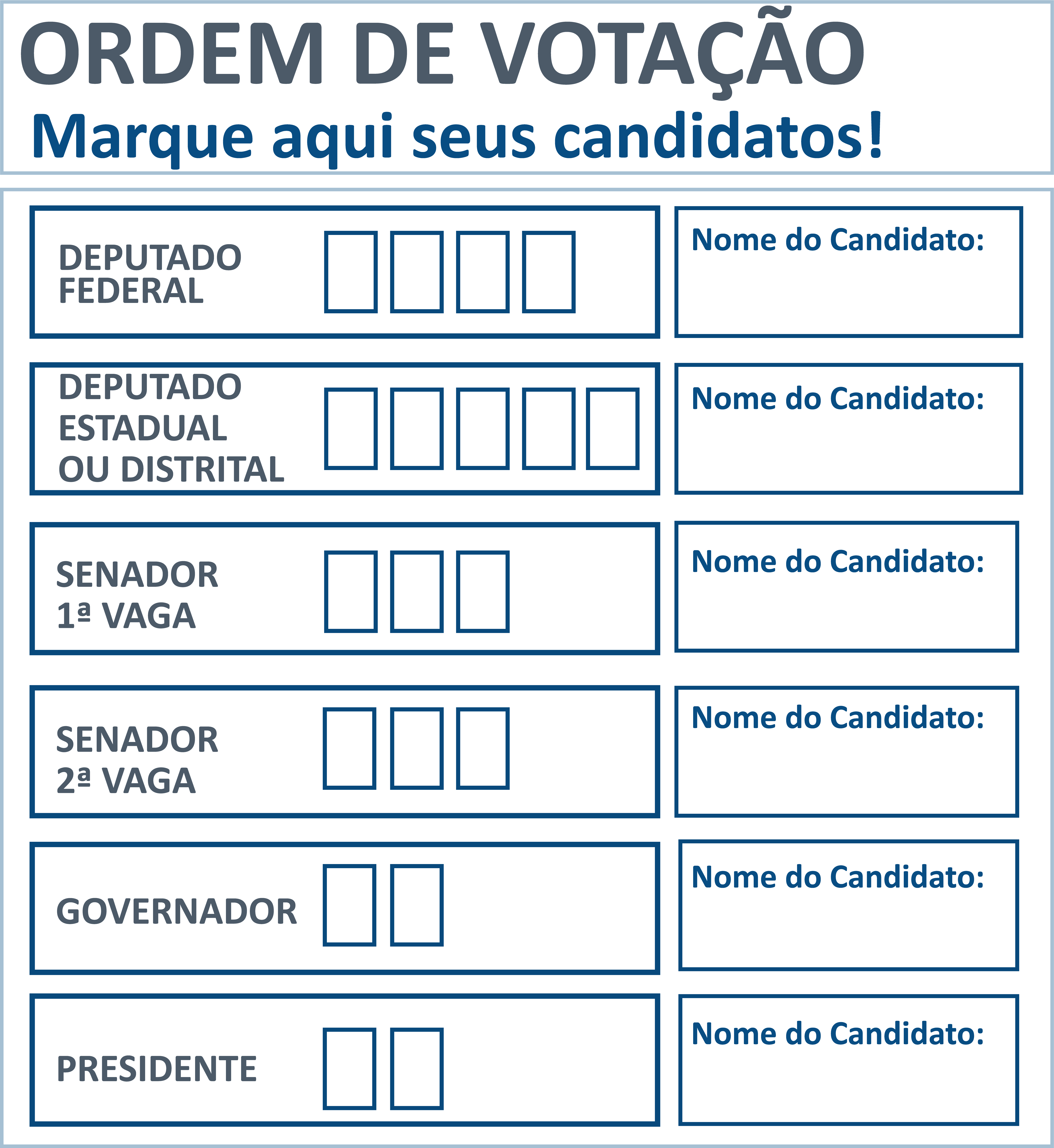 Neste ano, os eleitores vão escolher os candidatos na seguinte ordem: