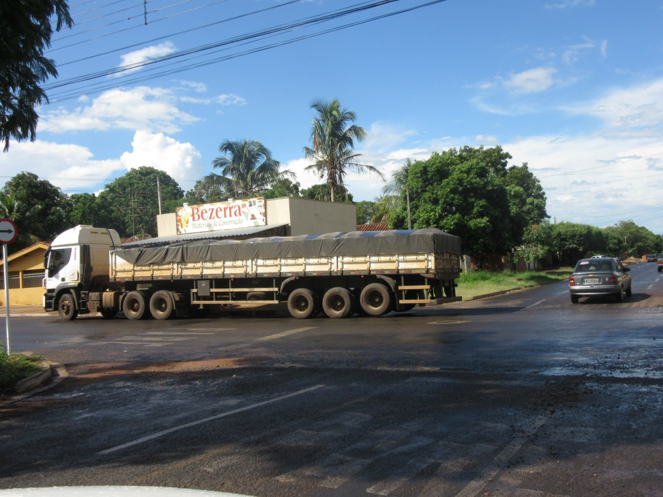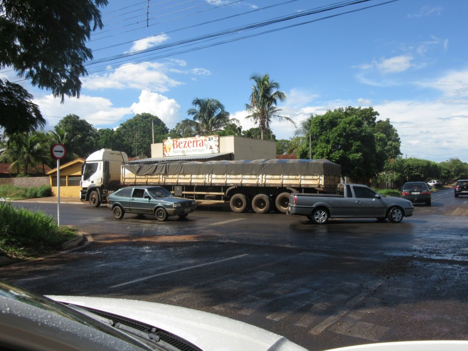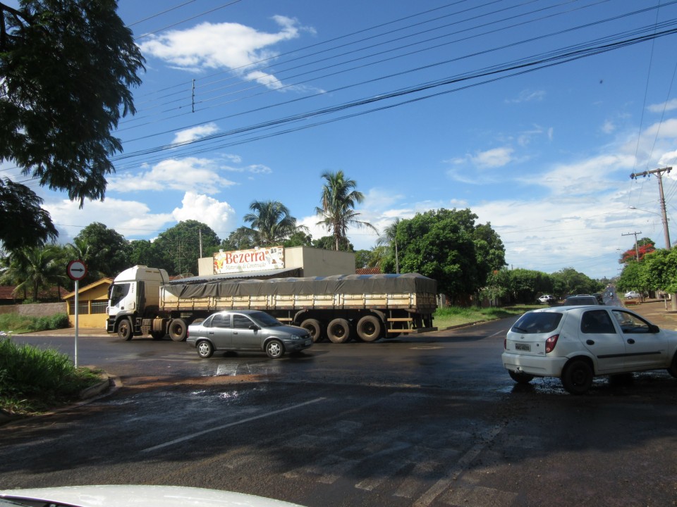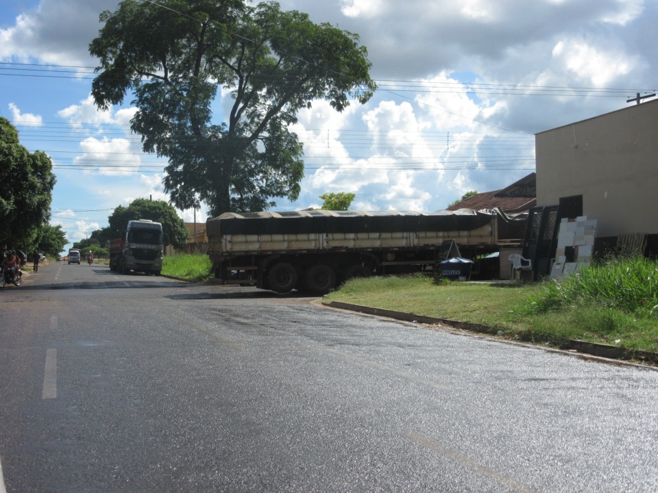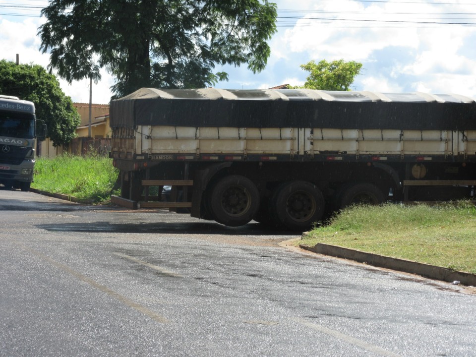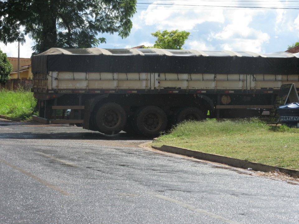 O caminhão se encontrava na Rua M.G Esteves cruzamento com a Rua Carlos Leituga, os condutores que trafegavam naquela via reclamaram do posicionamento do veículo, que por sorte não causou nenhum acidente.