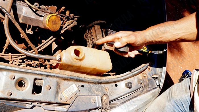 No momento deste pequeno acidente o eletricista teve a necessidade de chamar um mecânico para concertar o carro, já que vazou toda água do radiador.