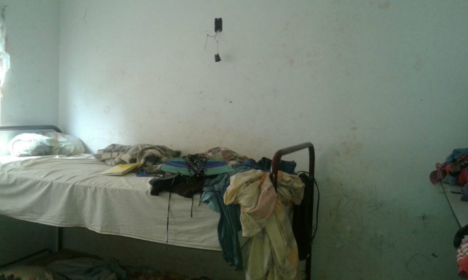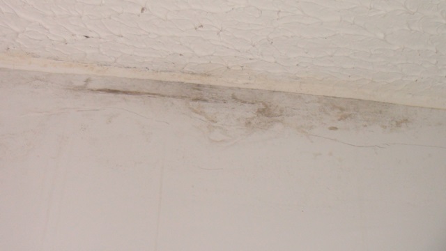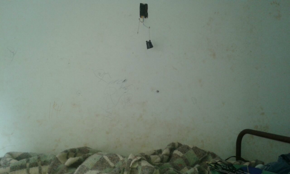 A condômina Carmem Lúcia Pereira mora no Bloco k, apartamento 102. O mofo tomou todas as paredes do quarto e da cozinha, muita infiltração. Pra piorar, há falta d’água na torneira do tanque. “A água não chega na torneira do tanque. Pode ter entrado ar, sei lá. Ninguém vem averiguar; já pedi. O esgoto já voltou pela pia e inundou toda a minha cozinha”, reclama.