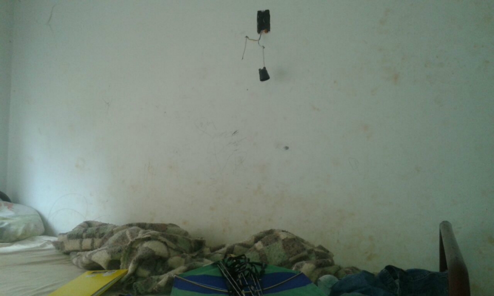 No apartamento nº 104 da Sra. Suélen Aparecida dos Santos, existe soquetes e interruptores com risco de choque elétrico, pois os fios estão soltos sem o devido espelho para proteção contra descarga elétrica. “Minhas crianças convivem com essa situação aqui ó. Um dos meus 4 filhos dorme na parte de cima da beliche, e perto do soquete de luz que fica solto”, alertou. Além disso, ela reclama do parquinho do condomínio que está com brinquedos quebrados, também gerando riscos de acidentes.