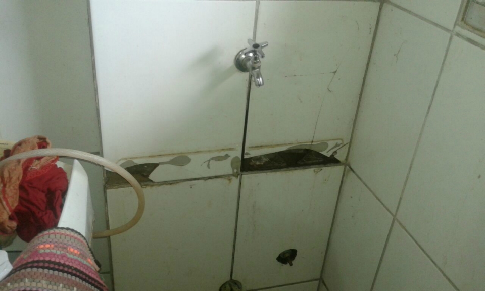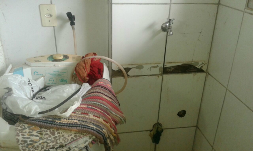 Dona Andréia também lembrou sobre o esgoto do apartamento do vizinho de cima que escorre para o térreo. “Com esse problema não utilizo mais o tanque e pra lavar roupas eu encosto o tanquinho perto do banheiro e lavo a roupa ali, porque a torneira do tanque e a tubulação de esgoto estão com problemas, vazando muito”, lamentou.