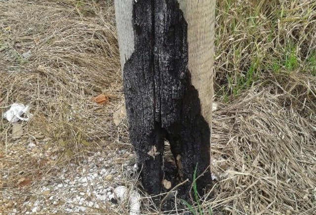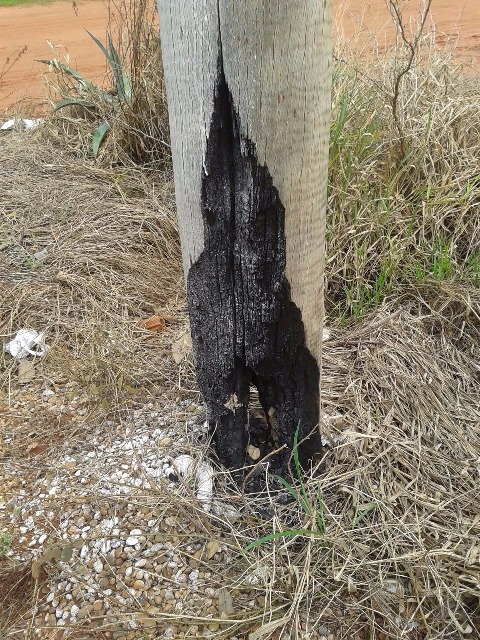 Um incêndio em um terreno baldio localizado na Rua João Gonçalves de Oliveira causou estragos em um poste de eucalipto da empresa Elektro, que teve a sua base atingida pelas chamas e por conta deste incidente ficou com a estrutura abalada.