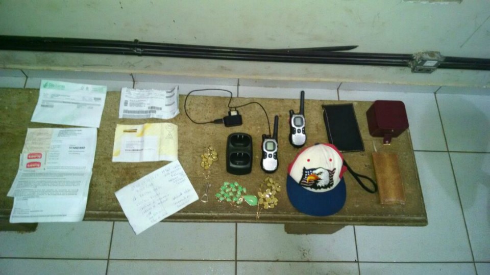 No local foram encontrados alguns documentos bem como dois rádios comunicadores, jóias,bonés uma bolsa de couro, uma agenda, duas carteiras de trabalho uma no nome de Larissa Pereira Cordeiro e outra no nome de Marcos Henrique Silva Maia, uma fatura no nome de Edilson Lucio Cordeiro e uma nota fiscal no nome de Elisabete Pereira Teixeira.