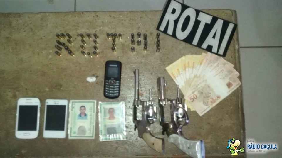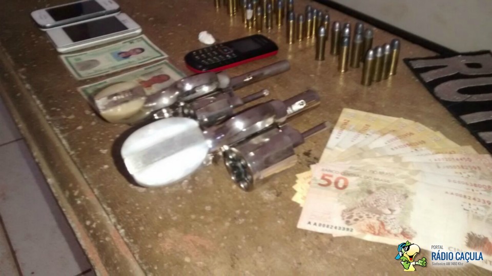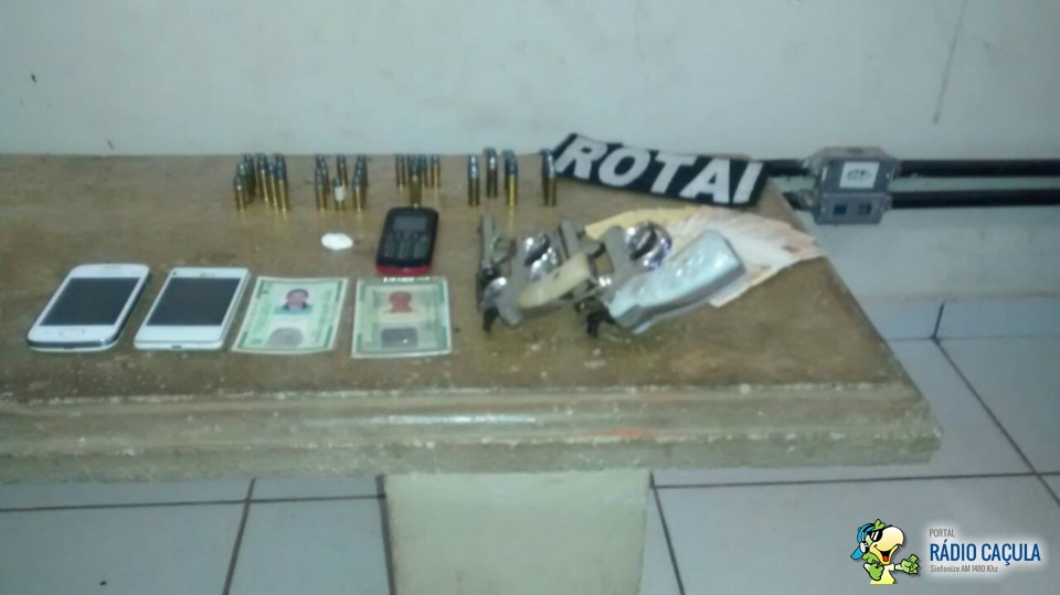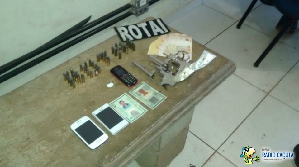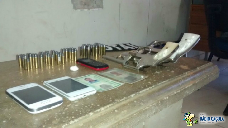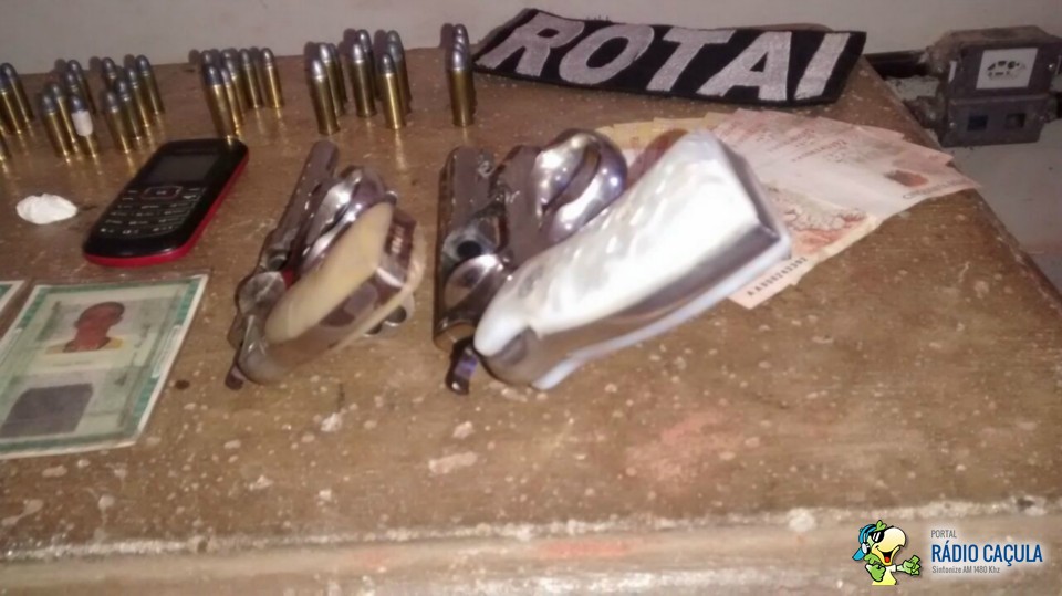 A Rotai se deslocou até a residência do acusado localizada na Rua do Compositor no bairro Jardim Eldorado, onde após buscas foi encontrado um revólver calibre 32 e várias munições do mesmo calibre, além de trouxinhas de drogas como crack e cocaína.
