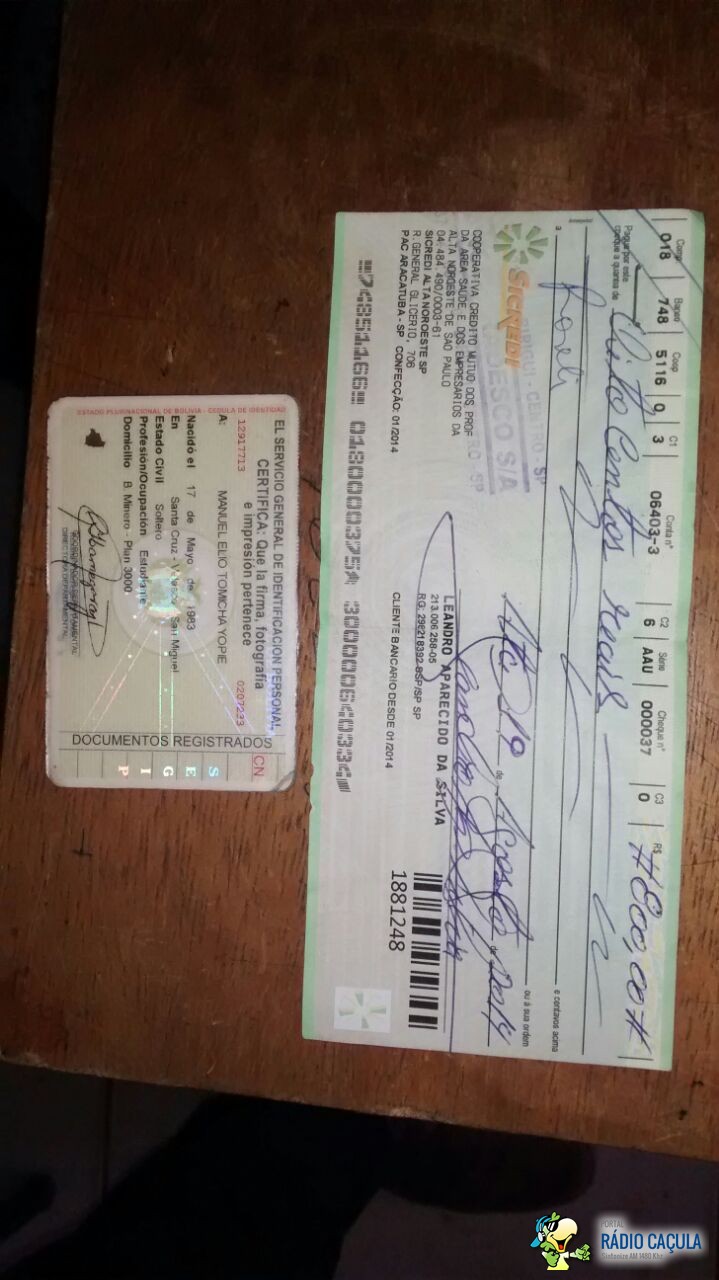 Ainda em buscas foram encontrados extratos bancários onde segundo Ilton pagou ao motorista uma quantia de R$ 1.000,00 para trazer o boliviano.