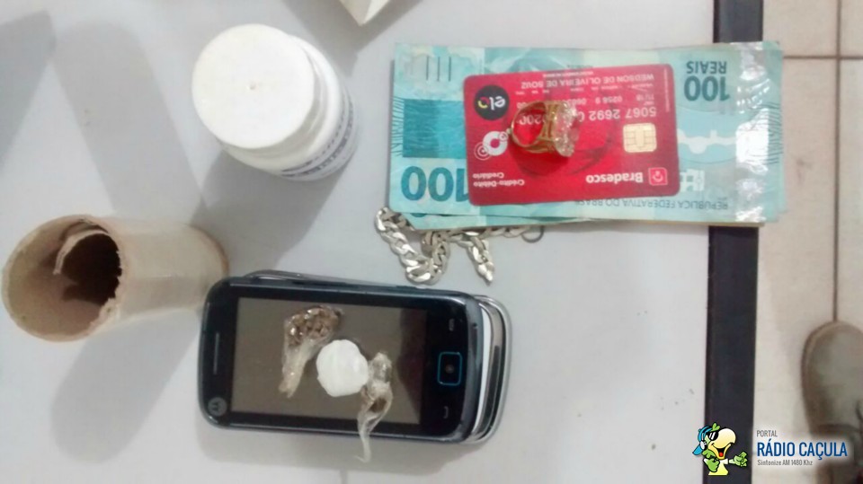 Em buscas pela residência encontraram no quarto sementes de maconha, papel filme usado para embalagem de entorpecentes, ácido bórico e R$ 323,00 em cédulas diversas que seriam provenientes da venda.