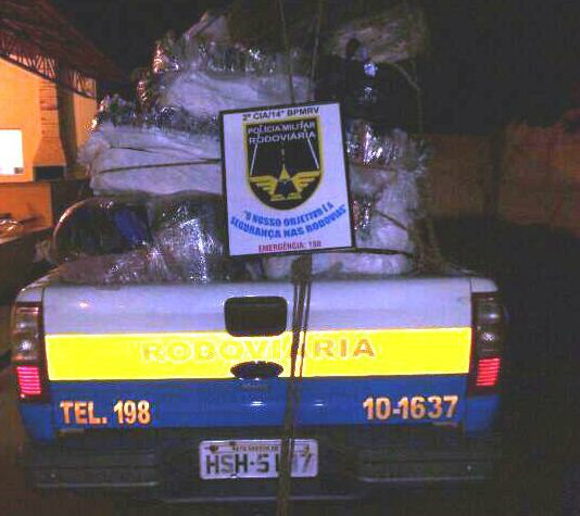 No entanto, logo após verificação dos documentos de praxe, foi realizada uma vistoria interna no referido veículo, que não só transportava a fécula de mandioca, mas também 18 fardos de roupas diversas que estavam acondicionadas sobre a carga.
