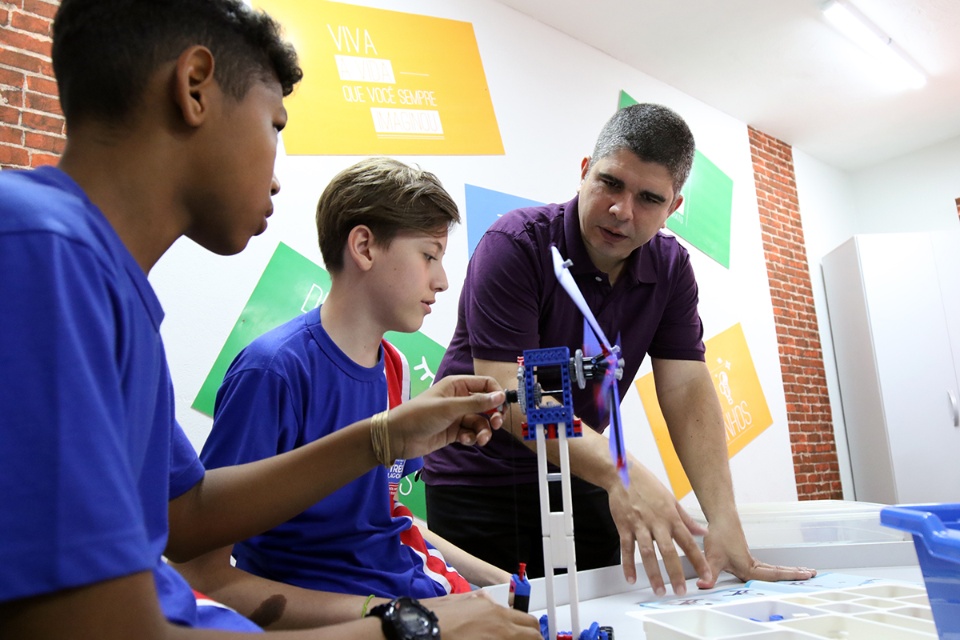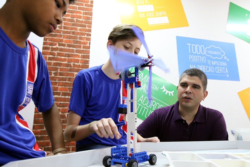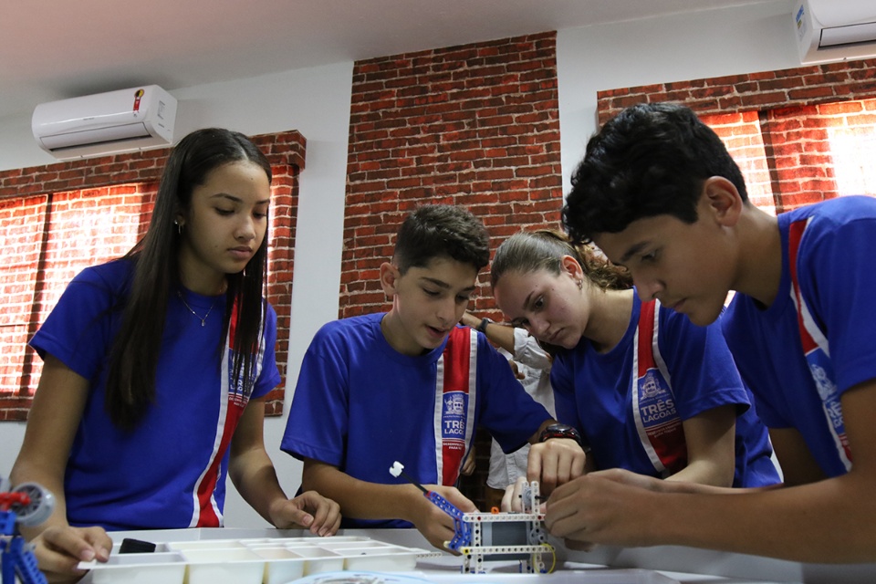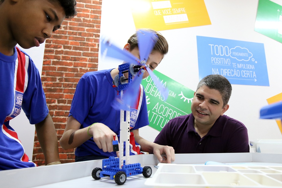 Para essa sala, a empresa trouxe a base do lego institute que é uma instituição validada e que faz essas práticas de desenvolvimentos. Além das práticas que estão dentro do setor de robótica, da montagem, de novos sistemas, do entendimento do funcionamento desses mecanismos, a sala em si permite a prática de outras atividades que podem ser desenvolvidas no âmbito cultural, no âmbito das disciplinas tradicionais como matemática, mas com um olhar diferenciado sempre pensando nas competências que possa desenvolver os jovens para o futuro.