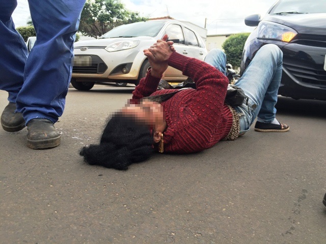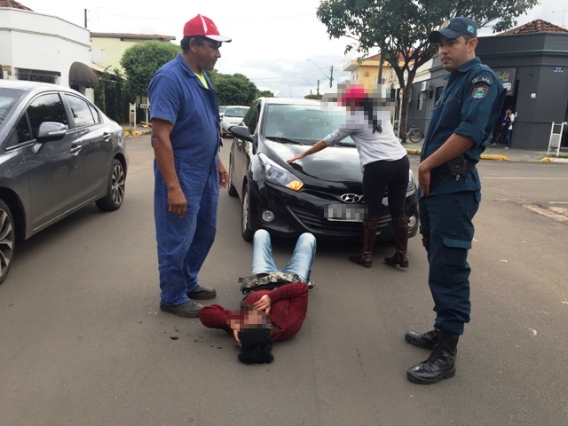 Uma mulher de 52 anos ficou ferida no início da tarde desta terça-feira (07) ao se envolver em um acidente de trânsito que ocorreu na área central de Três Lagoas.