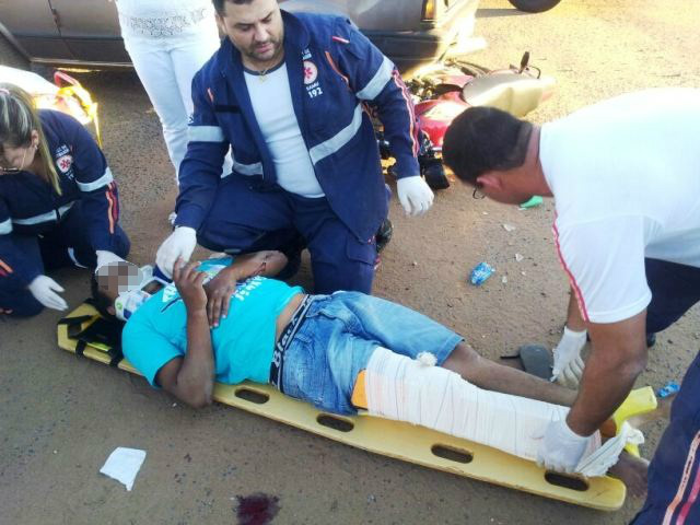 Colisão entre carro e motocicleta deixa jovem ferido em avenida do Centro de Três Lagoas