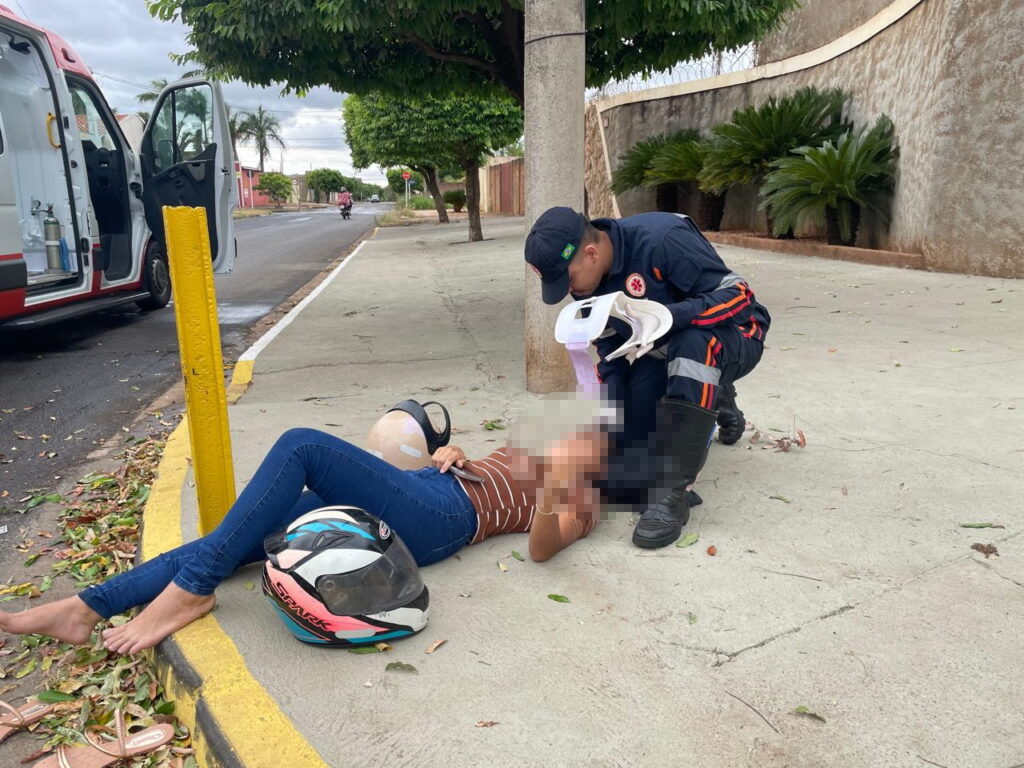 Uma jovem precisou ser socorrida pelo Serviço de Atendimento Móvel de Urgência (SAMU) após sofrer uma queda de moto no início da tarde da última segunda-feira (22), no bairro Santos Dumont II, em Três Lagoas (MS).