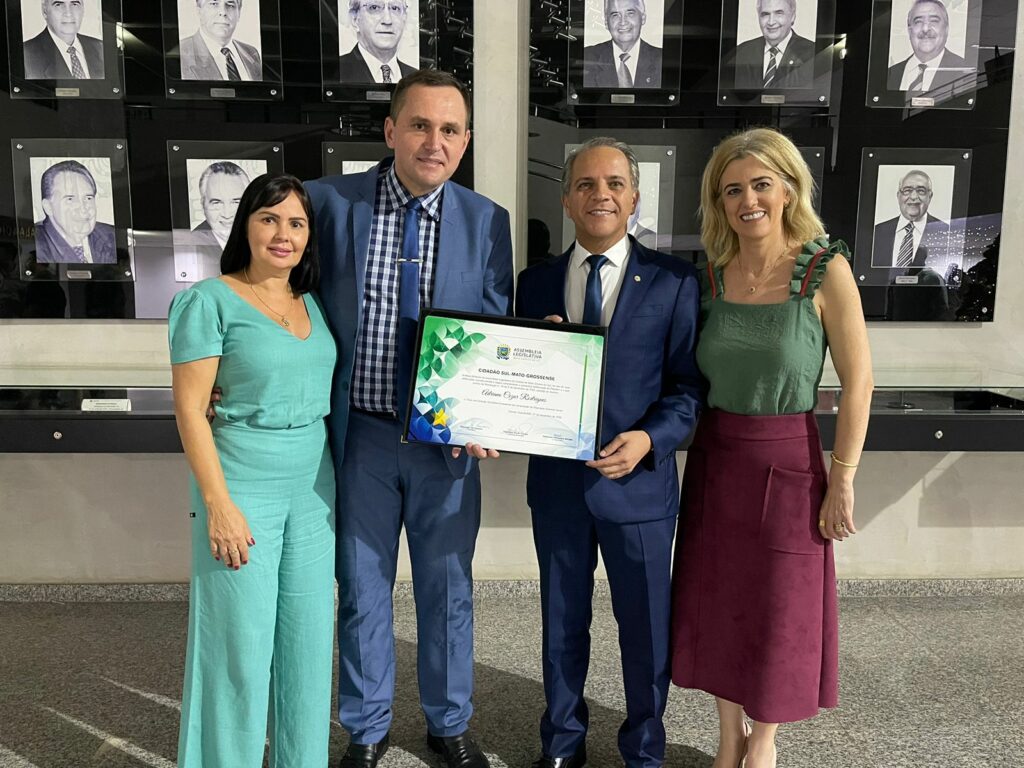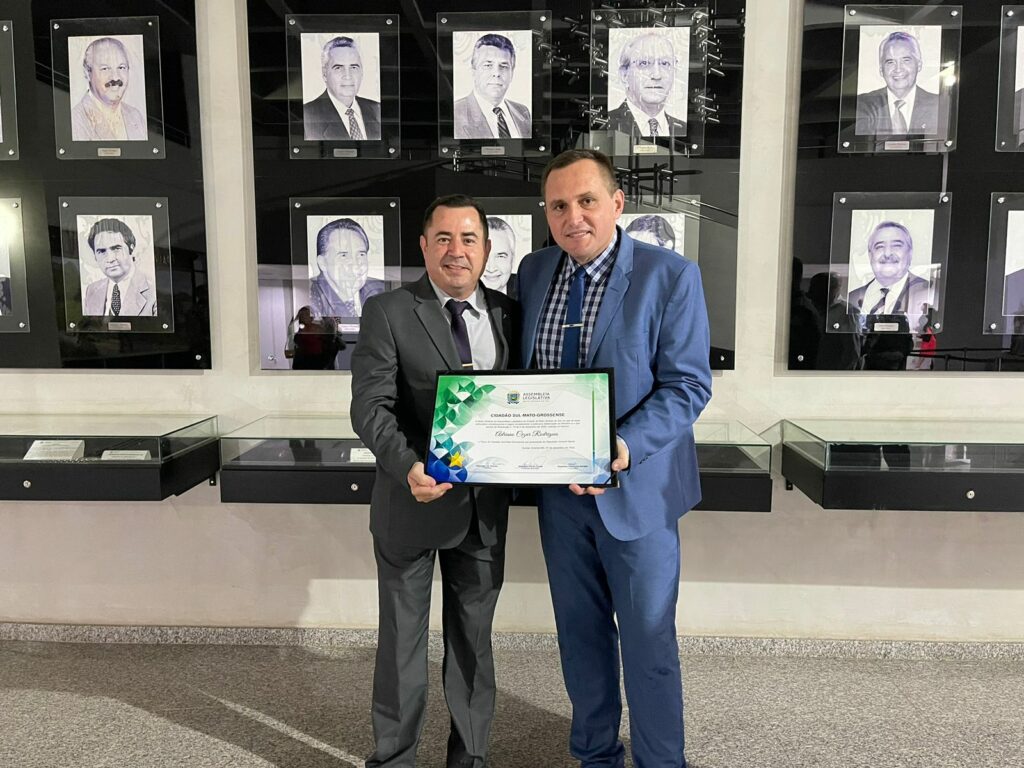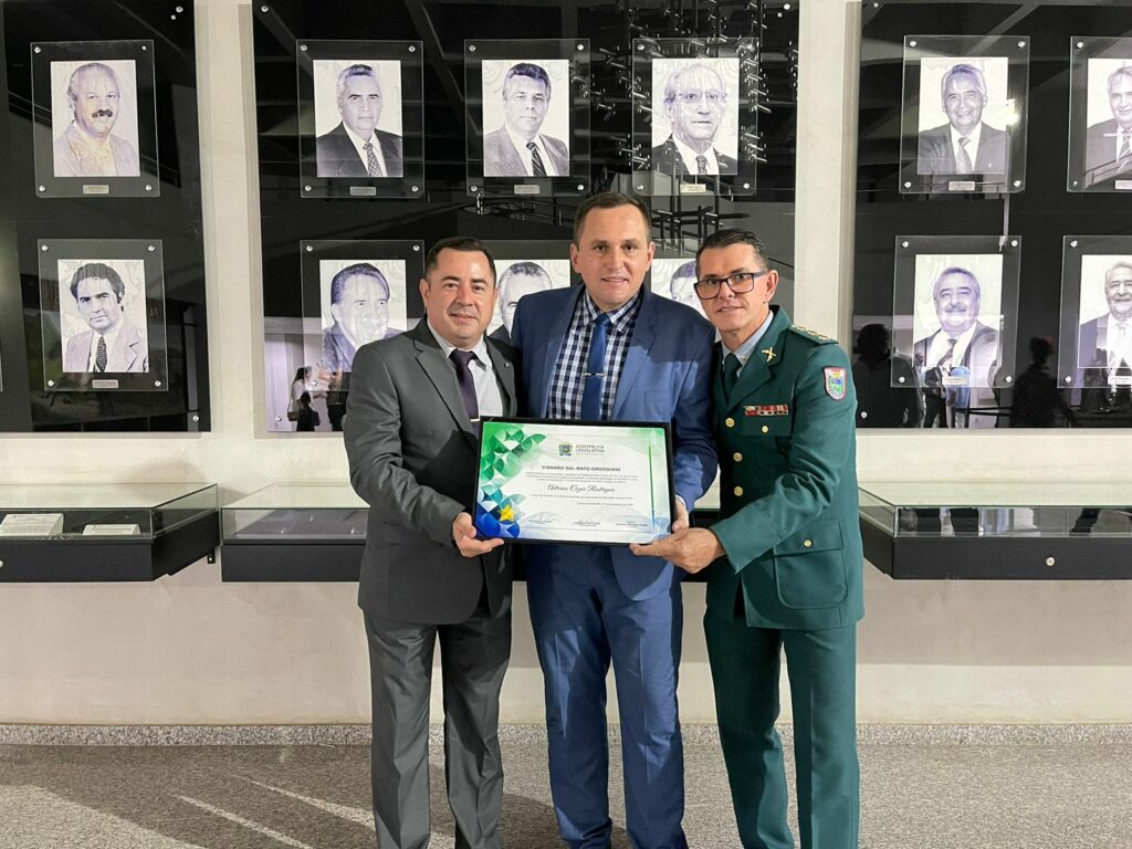 Representando a cidade de Três Lagoas, o Vereador Adriano Cezar Rodrigues, o Sargento Rodrigues, recebeu na noite desta quarta (07), o título de “Cidadão Sul-Mato-Grossense” da Assembleia Legislativa de Mato Grosso do Sul, entregue pelo Deputado Coronel David (PL), e que contou com a presença de diversos convidados.