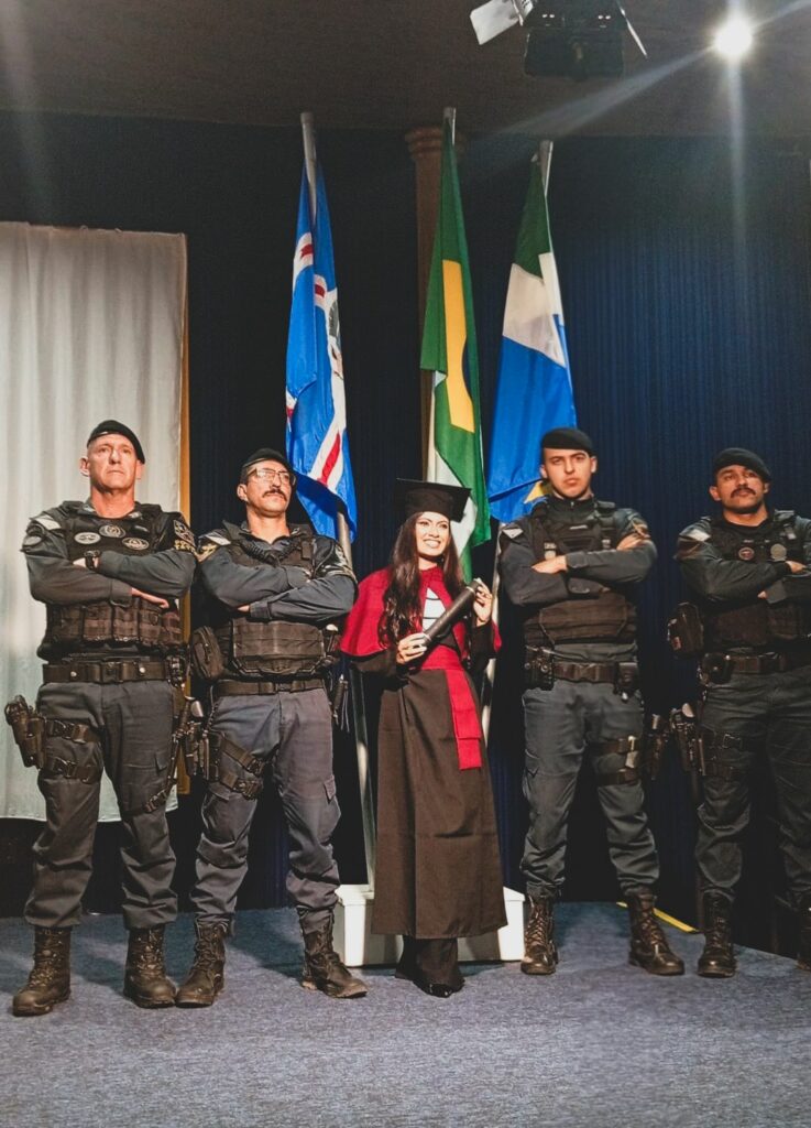 Aos 25 anos, Isabela Cézero atravessava o palco da AEMS, em Três Lagoas, para receber o diploma em Odontologia quando sentiu algo que não experimentava desde a infância. Ao ver os policiais da Força Tática do 2º Batalhão da Polícia Militar avançarem pelo anfiteatro, em formação silenciosa, a recém-formada não enxergou apenas fardas. Sentiu a presença do pai — um abraço interrompido aos 9 anos, mas jamais apagado pela memória.
