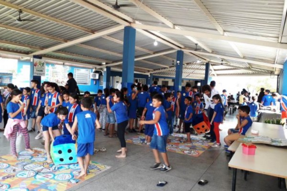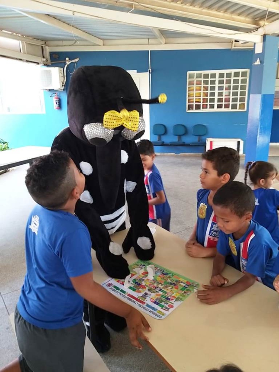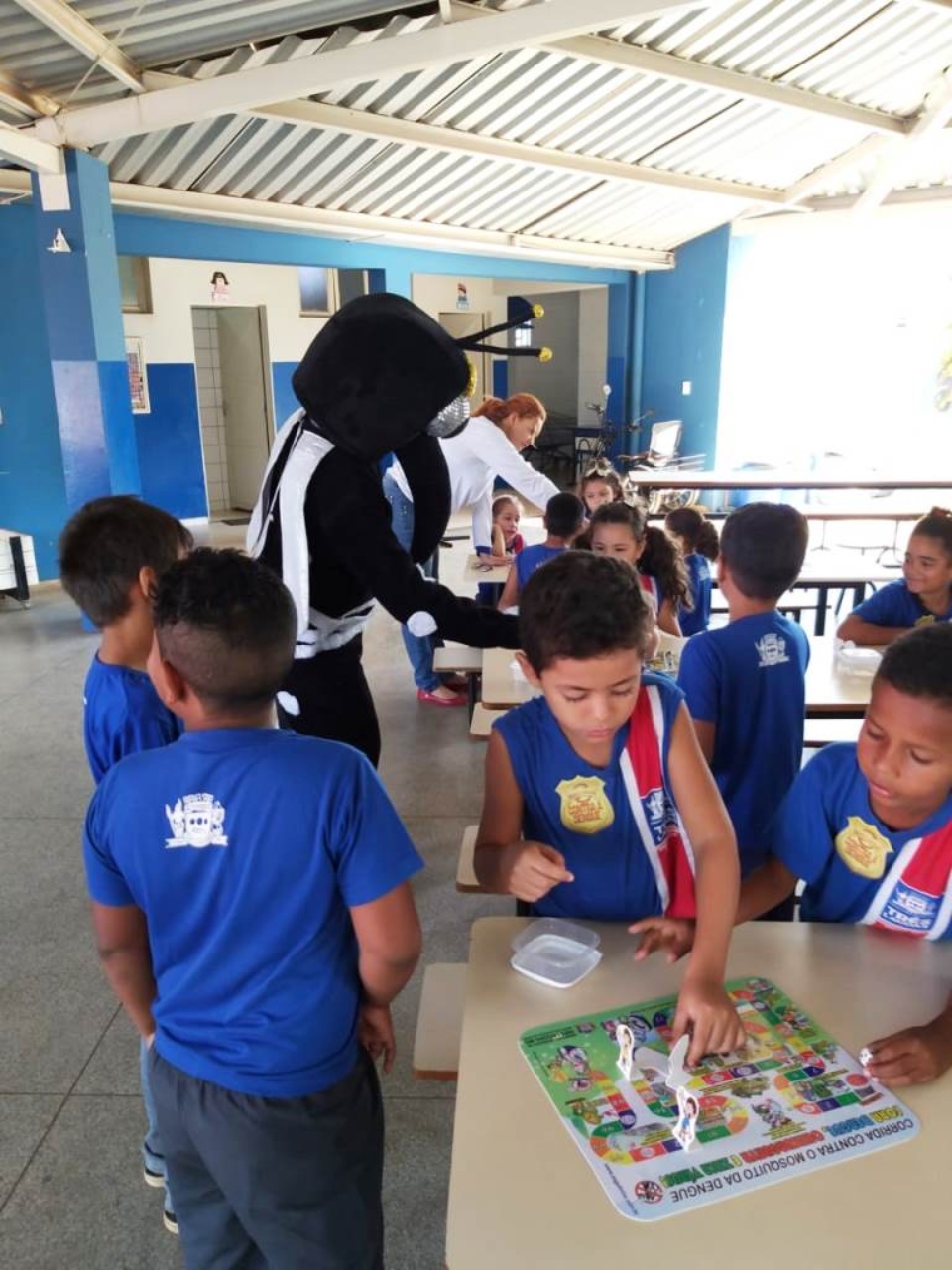 Alunos participando do projeto educativo  “Dia de Brincar de Combate à Dengue”. Foto: Reprodução.