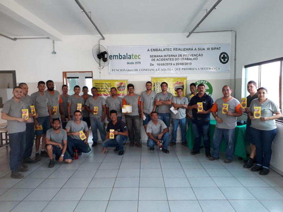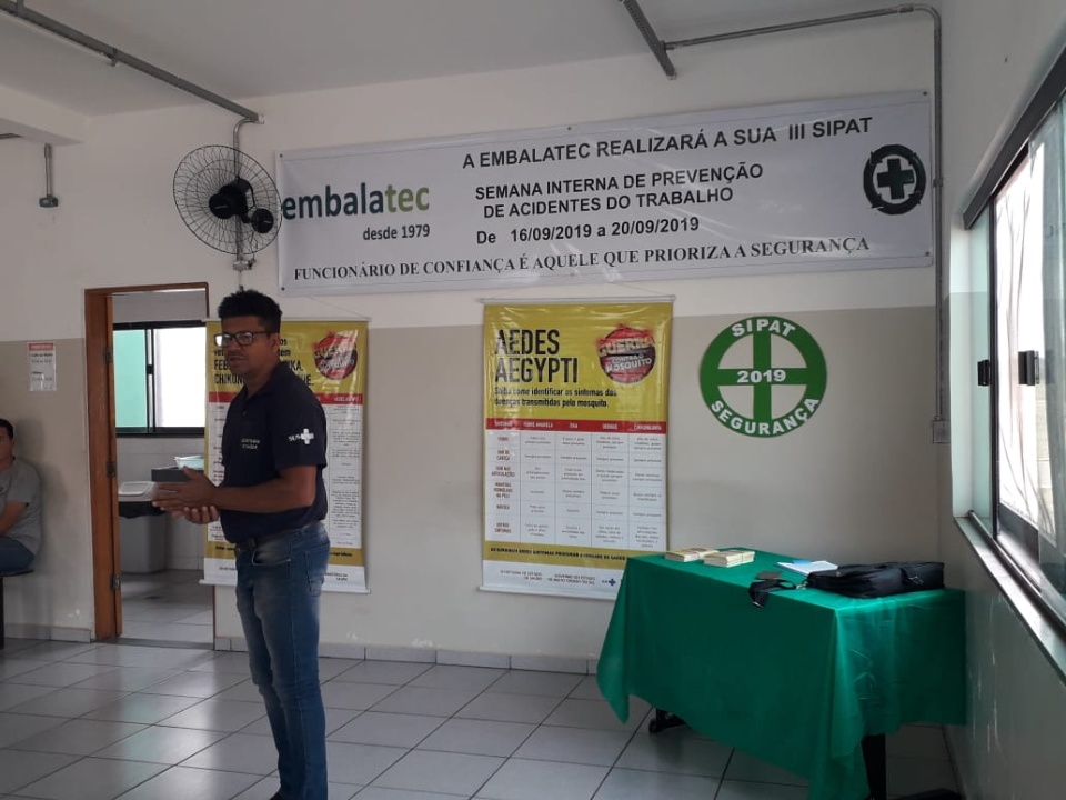 Atendendo à pedidos e seguindo a programação dessas ações de educação e prevenção, a equipe do setor de Promoção da Saúde, com o apoio e também participação dos demais setores da Diretoria de Vigilância em Saúde e Saneamento, esteve também na Empresa Embalatec, no Distrito Industrial, nesta semana.