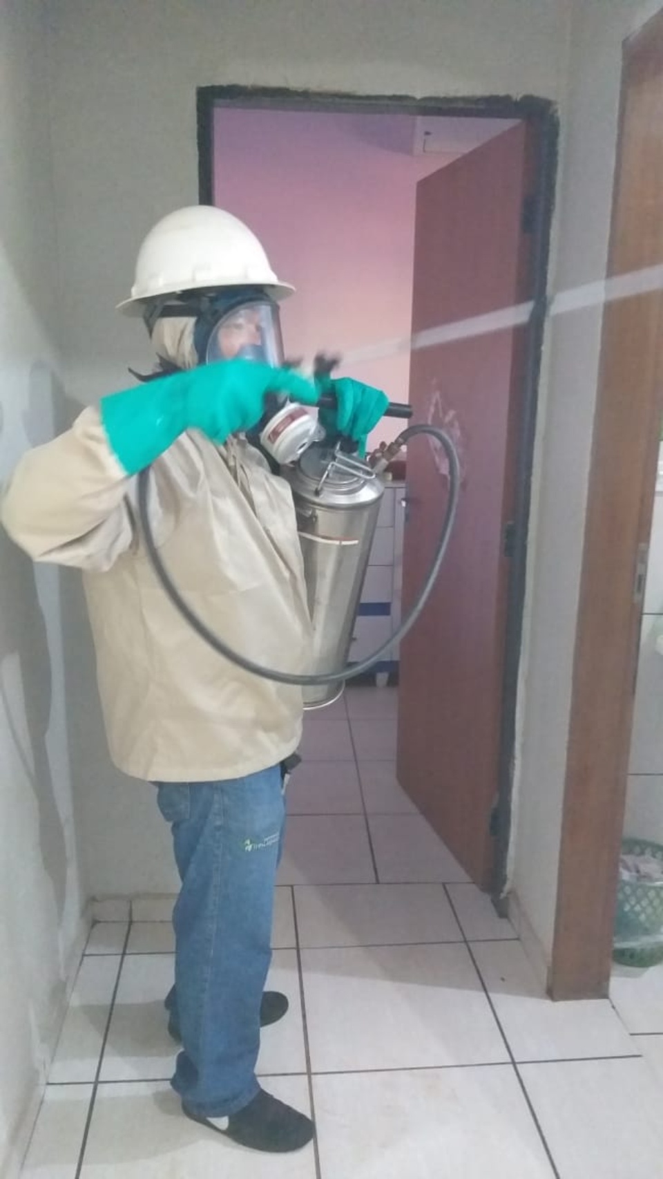 O bloqueio químico é uma outra ação que é realizada, usando a pulverização costal manual de inseticida próprio em todos os cômodos das residências, onde foi constatada a presença do mosquito, vetor da Leishmaniose.