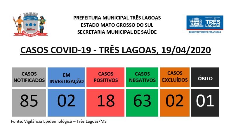 Conforme os dados, neste domingo (19), Três Lagoas notificou, do último boletim até hoje, cinco novos casos