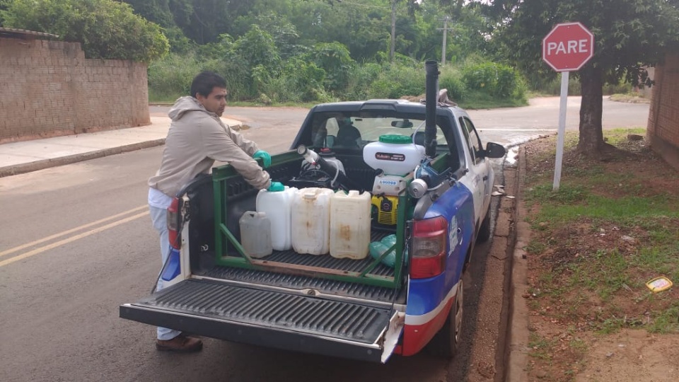 Esta ação, usando bomba UBV (Ultra Baixo Volume), com nebulizador de inseticida, acoplado na carroceria de uma camionete da SMS, foi executada no final da tarde desta quinta-feira (20) em algumas ruas de Vila Alegre e JK.