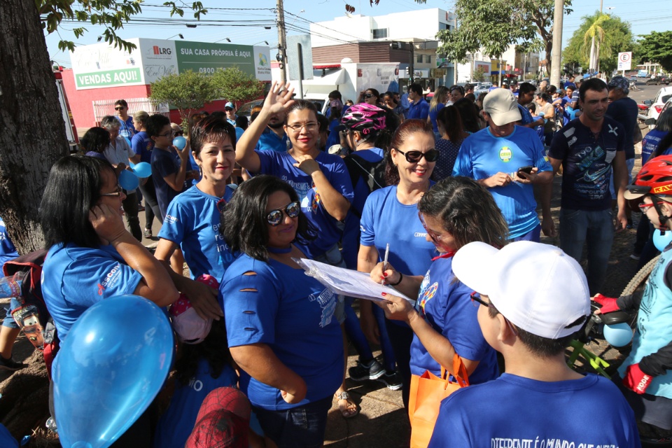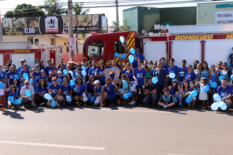 A caminhada reuniu simpatizantes e familiares que, vestidos de azul, apoiaram a causa caminhando pelas Ruas Bruno Garcia, Oscar Guimarães e Paranaíba, finalizando o percurso na Praça “Senador Ramez Tebet”.