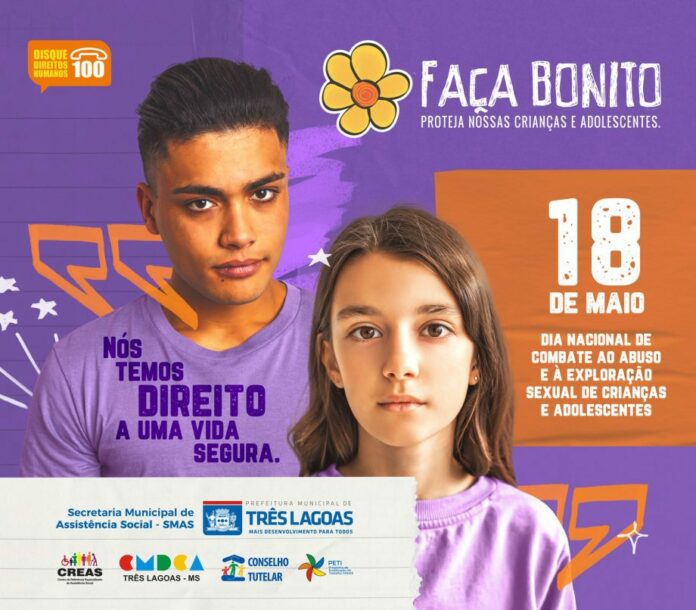 A Secretaria Municipal de Assistência Social (SMAS), por meio do Centro de Referência de Atendimento de Assistência Social (CREAS), estará desenvolvendo várias ações neste mês de maio, em Três Lagoas, referente ao Dia Nacional de Combate ao Abuso e Exploração Sexual de Crianças e Adolescentes. O dia 18 de maio é marcado como uma data para reforçar os direitos das crianças e adolescentes e chamar a atenção para esta causa.