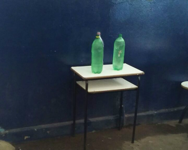 Sem bebedouro, escola de Três Lagoas usa garrafas pet para servir alunos