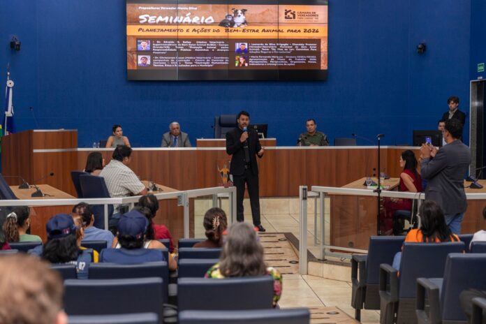 Por propositura do vereador Marco Silva, a Câmara sediou o Seminário Municipal de Bem-Estar Animal, com o tema “Planejamento e ações do bem-estar animal para 2026, na noite desta terça-feira, 09 de dezembro. Ao final, foram anunciados recursos e ações para o próximo ano.