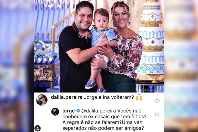 Em seu Instagram, o sertanejo foi questionado se ele tinha voltado com Ina. “Jorge e Ina voltaram?”. Jorge, por sua vez, respondeu sem papas na língua: “Vocês não conhecem ex casais que têm filhos? A regra é não se falarem? Uma vez separados não podem ser amigos?”, disse ele.