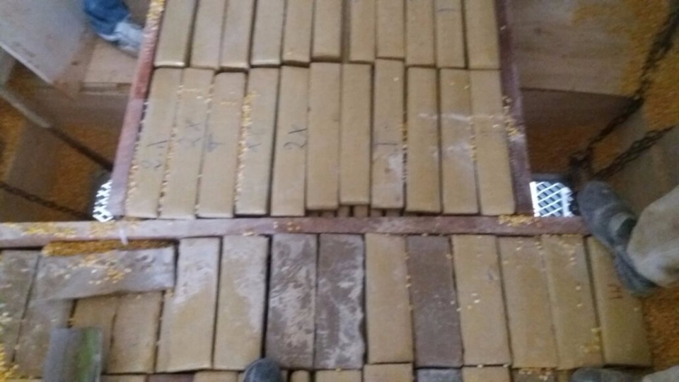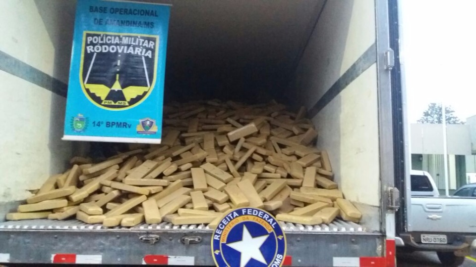 Os fiscais da receita federal realizaram a fiscalização de um caminhão bitrem que seguia no sentido Ivinhema x Nova Andradina. O veículo estava carregado com grãos de milho, que após serem descarregados em uma empresa na cidade de Ivinhema, foram localizados 5230 tabletes de maconha, que totalizaram 6860 kg da droga.