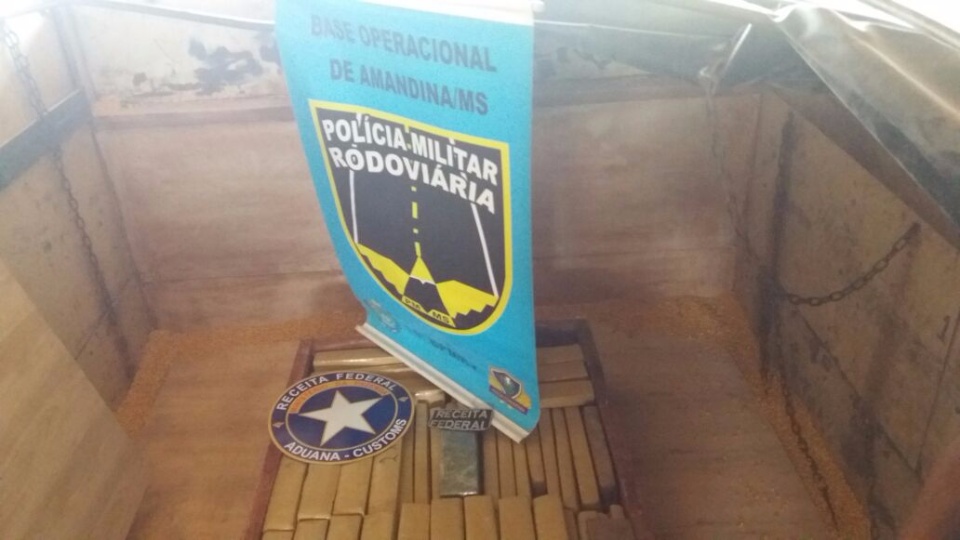 A Polícia Militar Rodoviária (PMR) realizou, nesta quinta-feira (17), a segunda maior apreensão de drogas da corporação no estado de Mato Grosso do Sul. Foram sete toneladas de maconha encontradas em meio a um carregamento de grãos de milho na cidade de Amandina (MS).