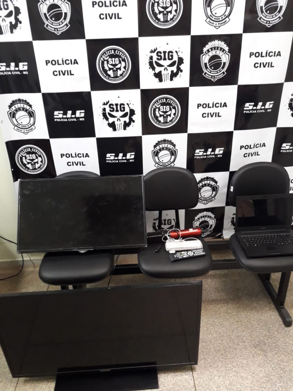 Também foram apreendidos na casa dos irmãos J. e S., um notebook; um aparelho de som portátil, dentre outros objetos que ao que tudo indica são produtos de furtos e estão à disposição de prováveis vítimas, para reconhecimento e restituição.