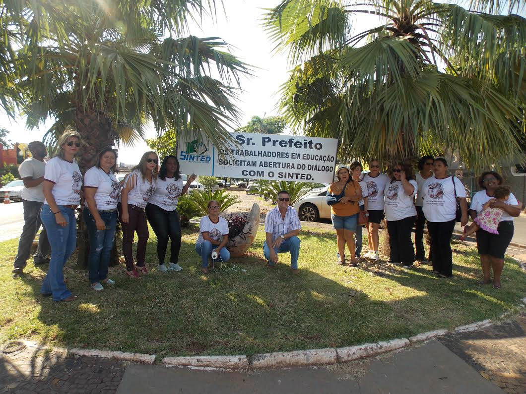 A manifestação aconteceu em frente da Prefeitura, onde os sindicalistas fixaram uma faixa com a frase “Srº prefeito, os trabalhadores em Educação solicitam a abertura de diálogo com o SINTED”.
