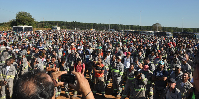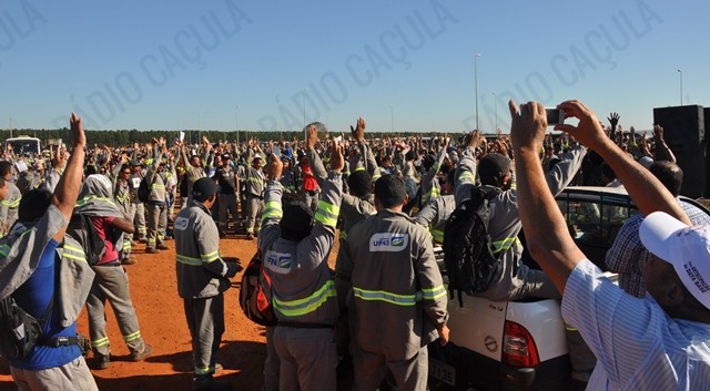 Na manhã desta terça-feira (2) a diretoria do Sindicato dos Trabalhadores nas Indústrias da Construção Civil, Mobiliário, Cerâmica e Montagem de Três Lagoas, Água Clara, Bataguassu, Brasilândia, Selvíria e Santa Rita do Pardo (Sintricom), acompanhada de dirigentes da CUT de vários municípios brasileiro realizou assembleia geral extraordinária para cerca de 8 mil trabalhadores em frente ao Canteiro de Obras do Consórcio UFN III, responsável pela construção da fabrica de fertilizantes da Petrobras.