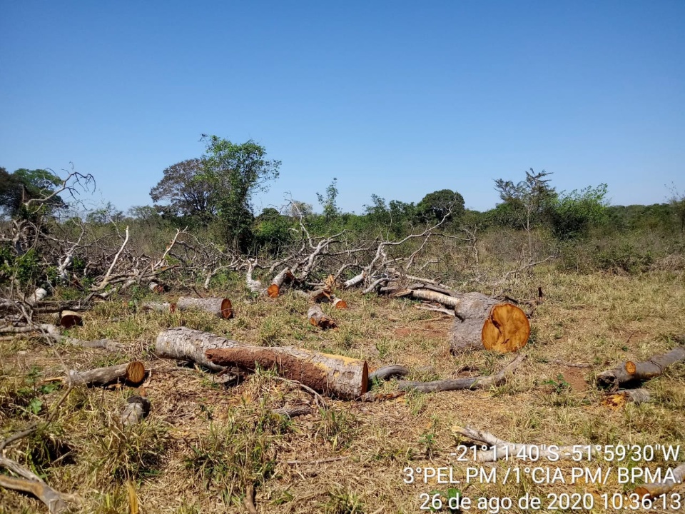 BRASILÂNDIA (MS) – Policiais Militares Ambientais de Três Lagoas receberam denúncias de exploração de madeira ilegalmente no município de Brasilândia, em um sítio localizado a 8 km da cidade, nas proximidades do assentamento João André. A equipe foi ao local na última quarta-feira (26) e localizou a área de exploração denunciada.