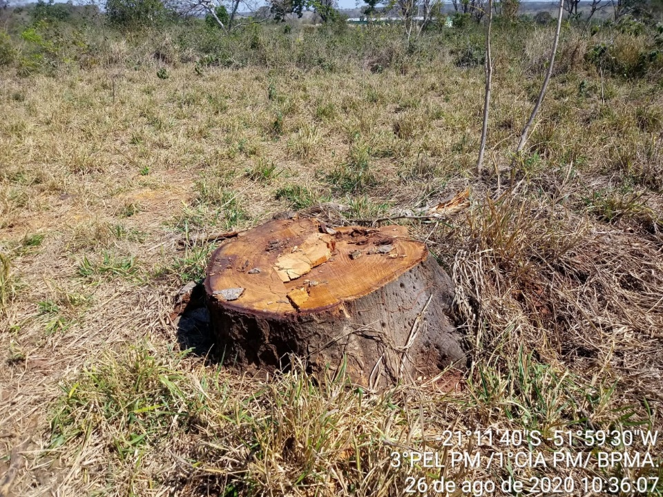 No local havia diversas árvores de grandes, derrubadas recentemente, das espécies angico e faveiro e as toras de madeira retiradas estavam sendo transformadas em estacas para cerca. Entre toras e estacas foram apreendidos 14,52 m³ de madeira explorada ilegalmente.