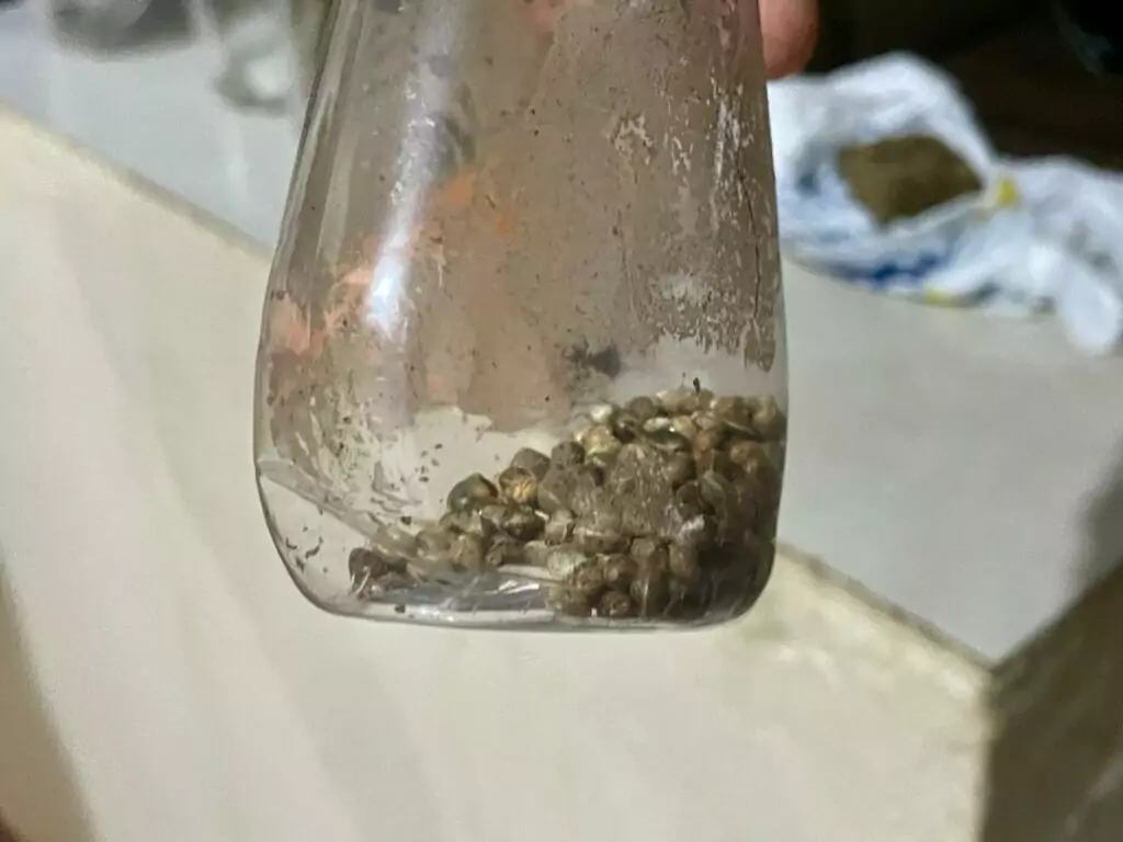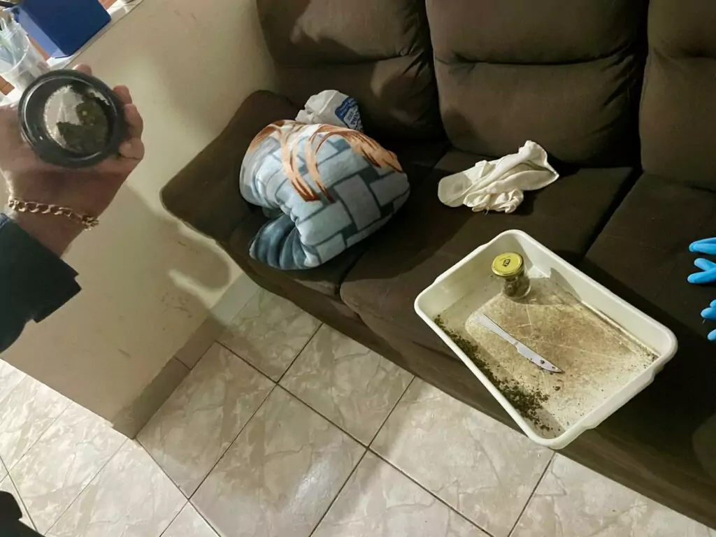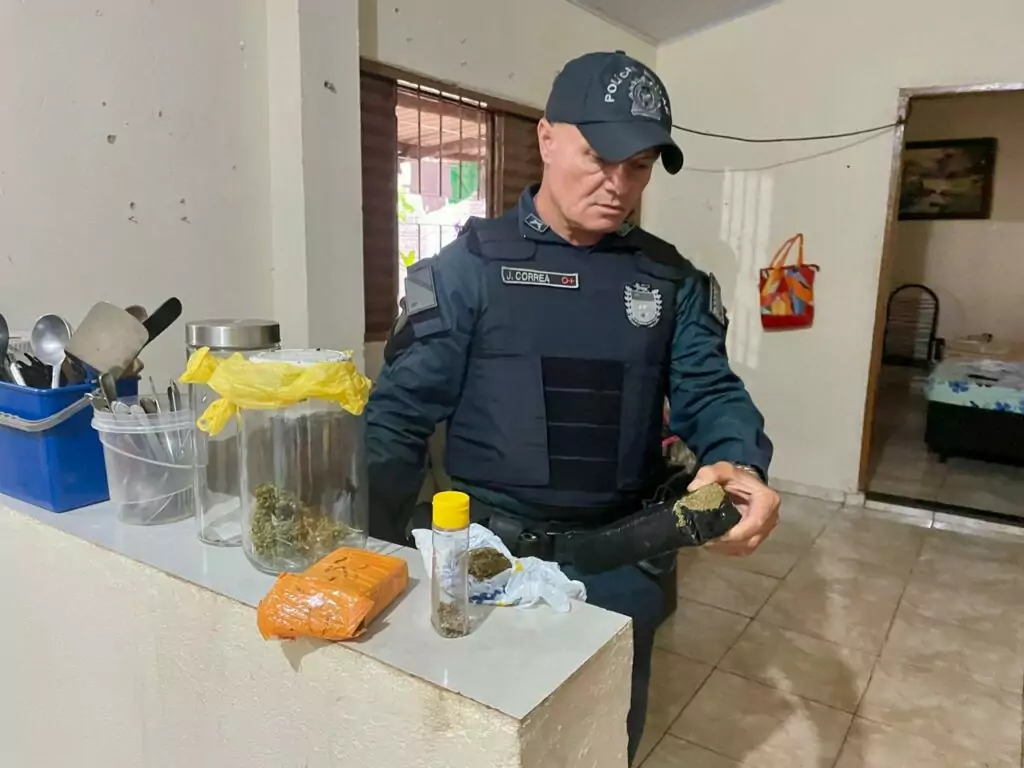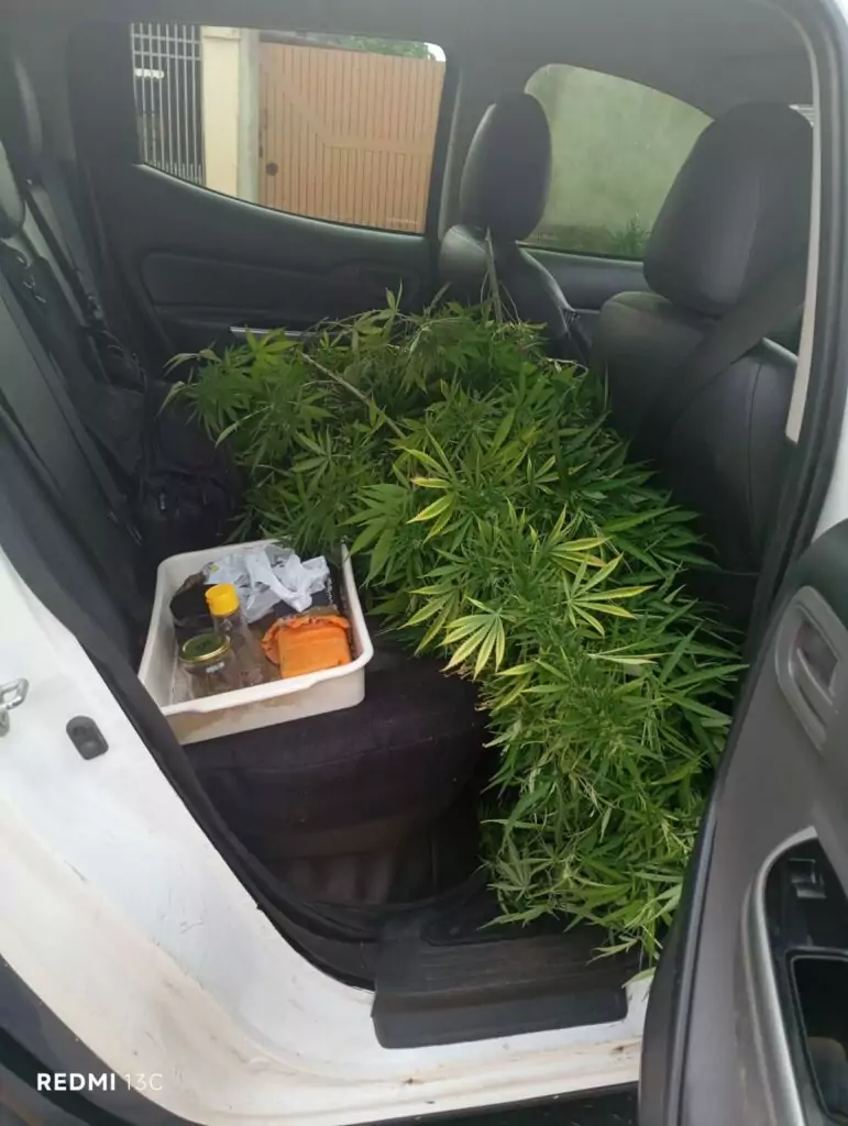 Diante do flagrante, a equipe realizou uma busca minuciosa na casa, onde foram encontrados um tablete e meio de maconha prensada, cerca de 100 sementes da droga e uma porção de Skunk (variação mais potente da substância). O morador afirmou que o material seria “para consumo próprio”, mas também indicou que parte das plantas, seis delas, que pertenceria à esposa.