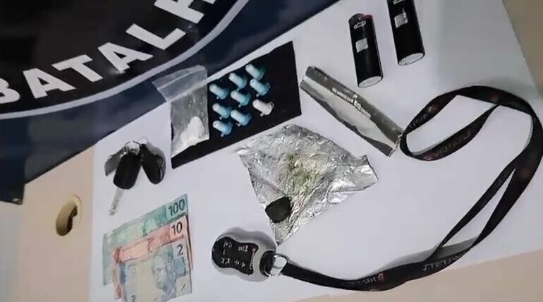 De acordo com a Rádio Patrulha, a equipe foi acionada para atender uma denúncia de som alto na rua Romeu de Campos. Durante a vistoria no veículo que estava causando o incômodo, os militares encontraram nove pinos de cocaína, além de uma embalagem contendo outras porções da mesma droga e ainda uma quantidade de haxixe.