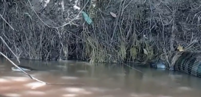 Conforme apurado, na tarde de segunda-feira (27), um grupo de canoístas flagrou uma típica cena sul-mato-grossense: uma sucuri de, pelo menos, 6 metros digerindo “banquete” na barranca do rio. Pelas imagens é possível identificar uma parte da cabeça do animal dentro da água e o restante boiando na superfície.