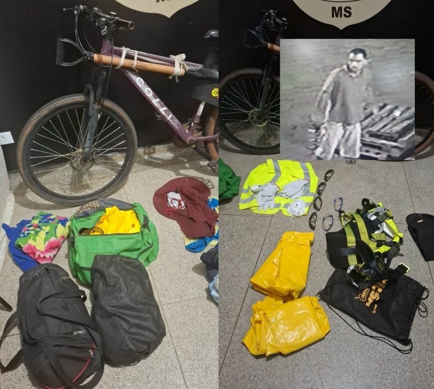Na mesma madrugada, o homem seguiu para o galpão de uma empresa do setor florestal, onde subtraiu equipamentos de proteção individual (EPIs) e uniformes corporativos. Segundo a apuração policial, a intenção seria dificultar sua identificação e despistar eventual ação das autoridades. Ainda durante a ação criminosa, o suspeito furtou uma bicicleta e fugiu em direção ao município de Três Lagoas.