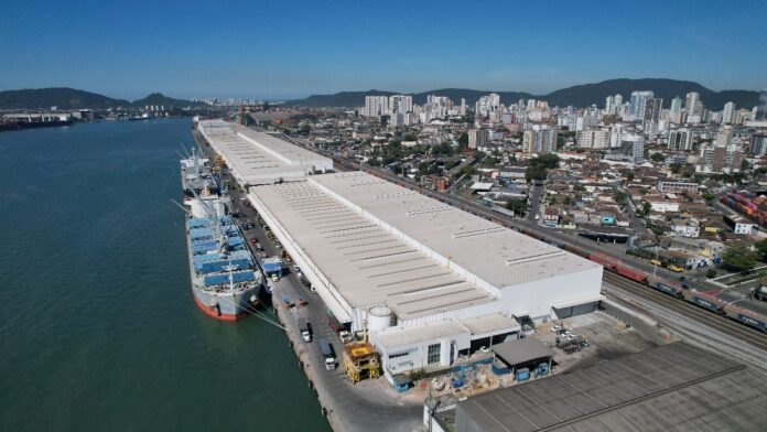 Com investimento estimado em R$ 443 milhões em logística para atender a produção da nova fábrica em Ribas do Rio Pardo (MS), companhia amplia a capacidade de movimentação média de carga do complexo portuário em 43%.