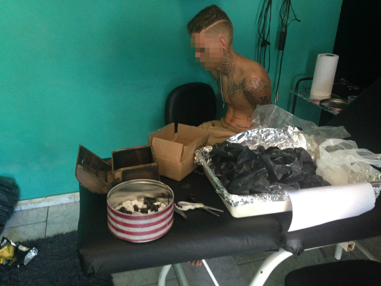 O tatuador foi detido em seu estúdio, localizado na Avenida Antônio Trajano nas proximidades da rodoviária municipal, e alem dos apetrechos utilizados nos roubos, também foi localizado escondido no forro do estabelecimento, 50 trouxinhas de crack prontas para a venda, o notebook e o estetoscópio do médico.