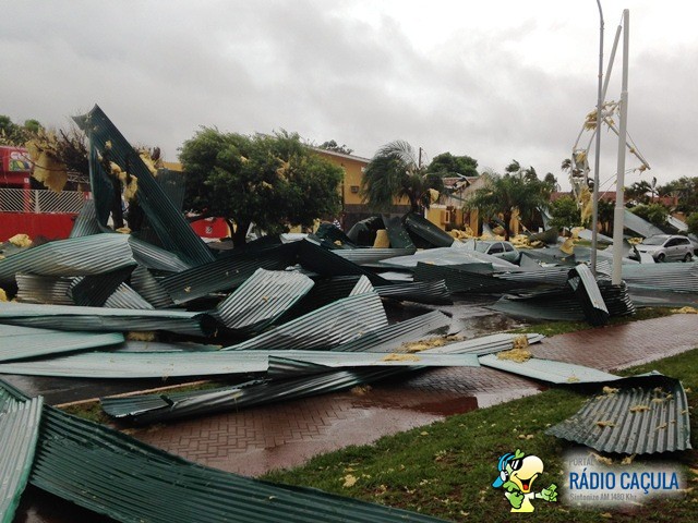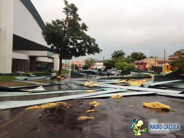 Parte da cobertura do Ginásio caiu em carros e casas. Foto: Rádio Caçula