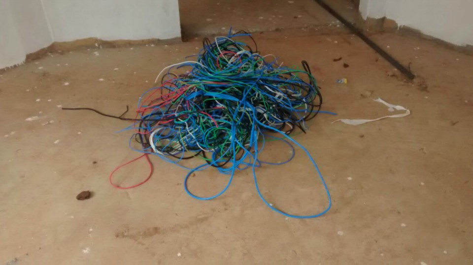 Logo na chegada a residência os policiais perceberam que os fios já teriam sido totalmente arrancados e estavam prontos para serem levados pelo autor.