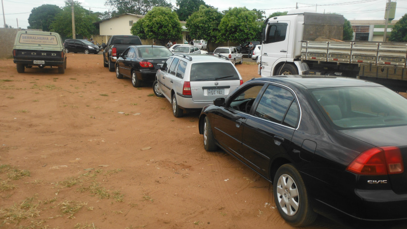 Um terreno baldio lotado na frente do recinto – na Rua João Silva no bairro Jardim Morumbi – é usado como estacionamento de automóveis que aguardam para serem emplacados.