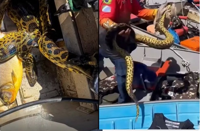 O que era para ser uma manhã tranquila de pescaria no Pantanal acabou virando surpresa para um grupo de mulheres em Corumbá (MS). Durante a pesca, elas se depararam com uma sucuri-amarela em uma das embarcações.