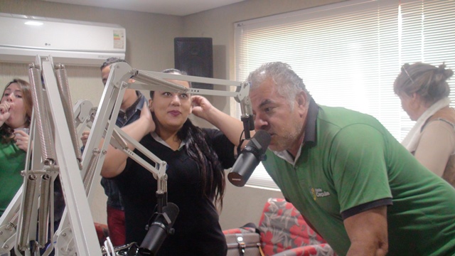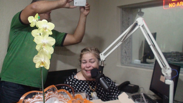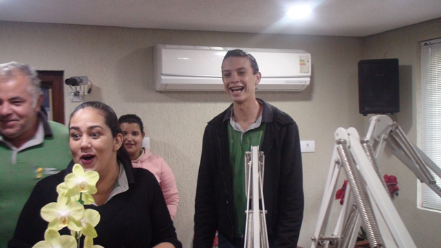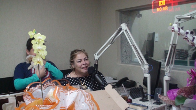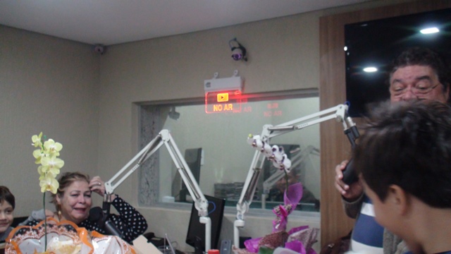 Para a surpresa da aniversariante, o maridão Romeu de Campos Júnior, acompanhado dos familiares e a equipe Caçula, promoveram uma invasão no estúdio principal para o tradicional ‘Parabéns a Você’. Confraternização perdurou até o encerramento do programa de Toninha, com direito a salgadinhos, refrigerantes, bolo e muitos beijos e abraços na querida amiga do rádio.