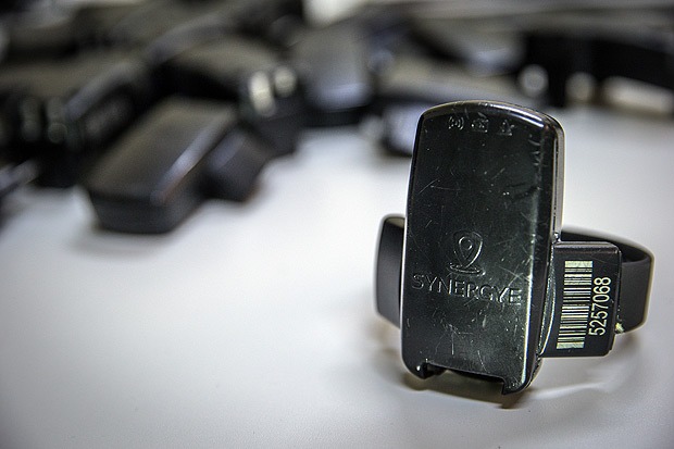 Tornozeleira eletrônica rompida é encontrada jogada na calçada no Centro