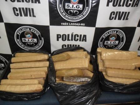 O SIG (Serviço de Investigações Gerais) de Três Lagoas (MS) apreendeu 74 tijolos de maconha que totalizaram 47,625 Kg. A apreensão foi na manhã desta quarta-feira (27) na zona rural do município, na BR-262, Km 37.