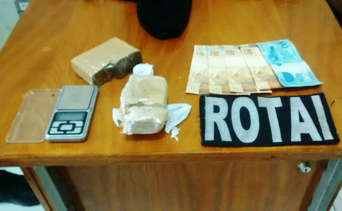 Marimba confirmou o tráfico de drogar e na casa foram apreendidos uma balança de precisão, dois tabletes de maconha, uma trouxinha de cocaína e trezentos reais em espécie.