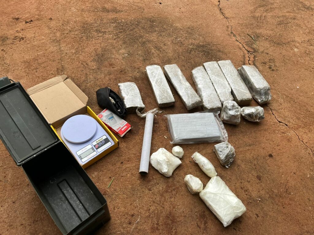 Já testemunhas informaram que o suspeito detido frequentava diariamente a residência onde tinha estacionado o carro no momento da abordagem, além de passar a maior parte do tempo nos fundos do imóvel, indo até o local, encontrando alguns tabletes de maconha, pesando aproximadamente 2kg, além de balanças de precisão e outros apetrechos usado para o embalo da droga.